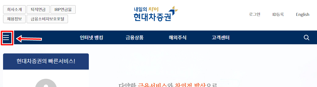 홈페이지로 오셨다면 아래 그림처럼 좌측 상단에 짝대기 3개를 클릭해 주세요.
