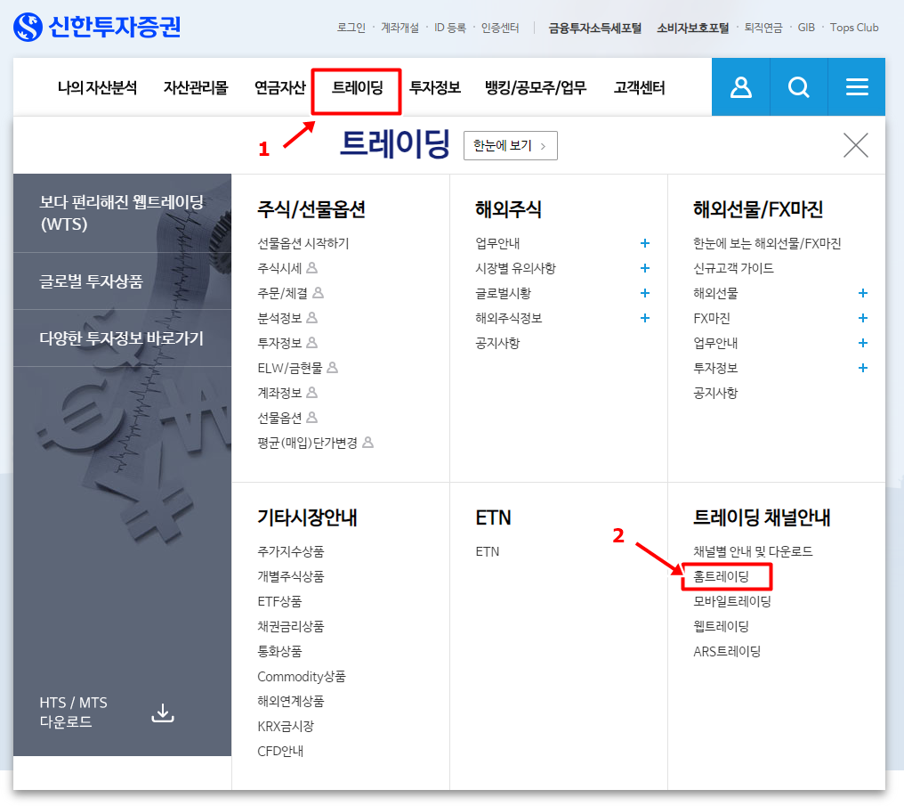 1. 신한투자증권 HTS 다운로드 바로가기