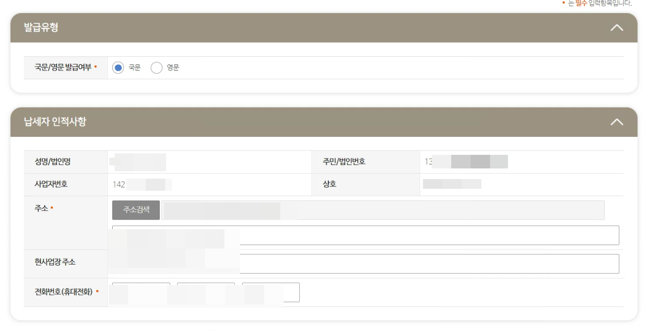 이제 순서대로 입력을 해주시면 되겠는데요. 특히 빨간 *은 반드시 입력해야 하는 곳으로써 틀리지 않게 잘 써주세요. 주소의 경우 법인 사업자등록증에 나와있는 주소를 넣으시면 되고요.