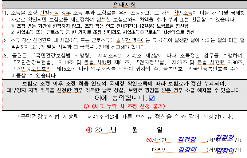 지역보험료 소득월액보험료 소득정산동의서 작성 방법