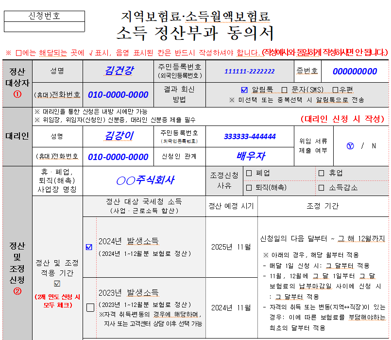 지역보험료 소득월액보험료 소득정산동의서 작성 방법