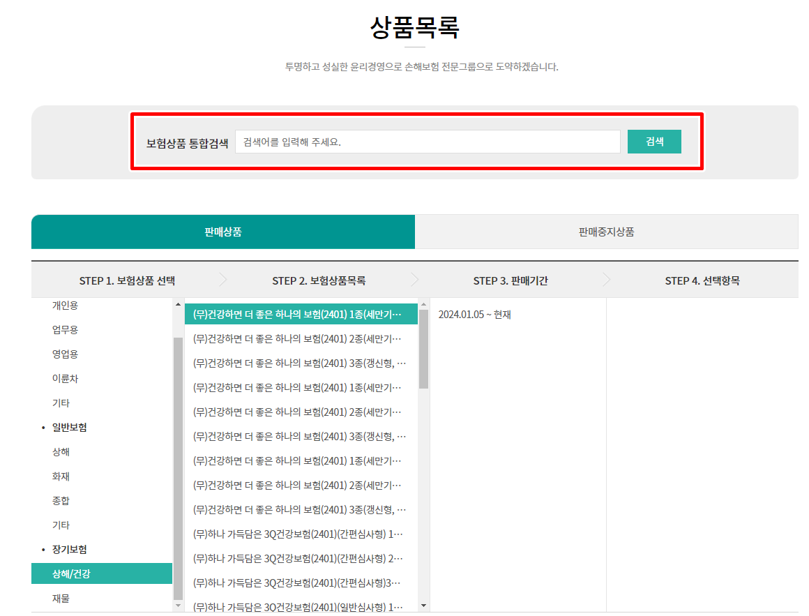 보통 보험상품은 판매시작하고 100일간 판매되고 단종되기 때문에 본인 상품을 잘 찾아 검색해 주세요.