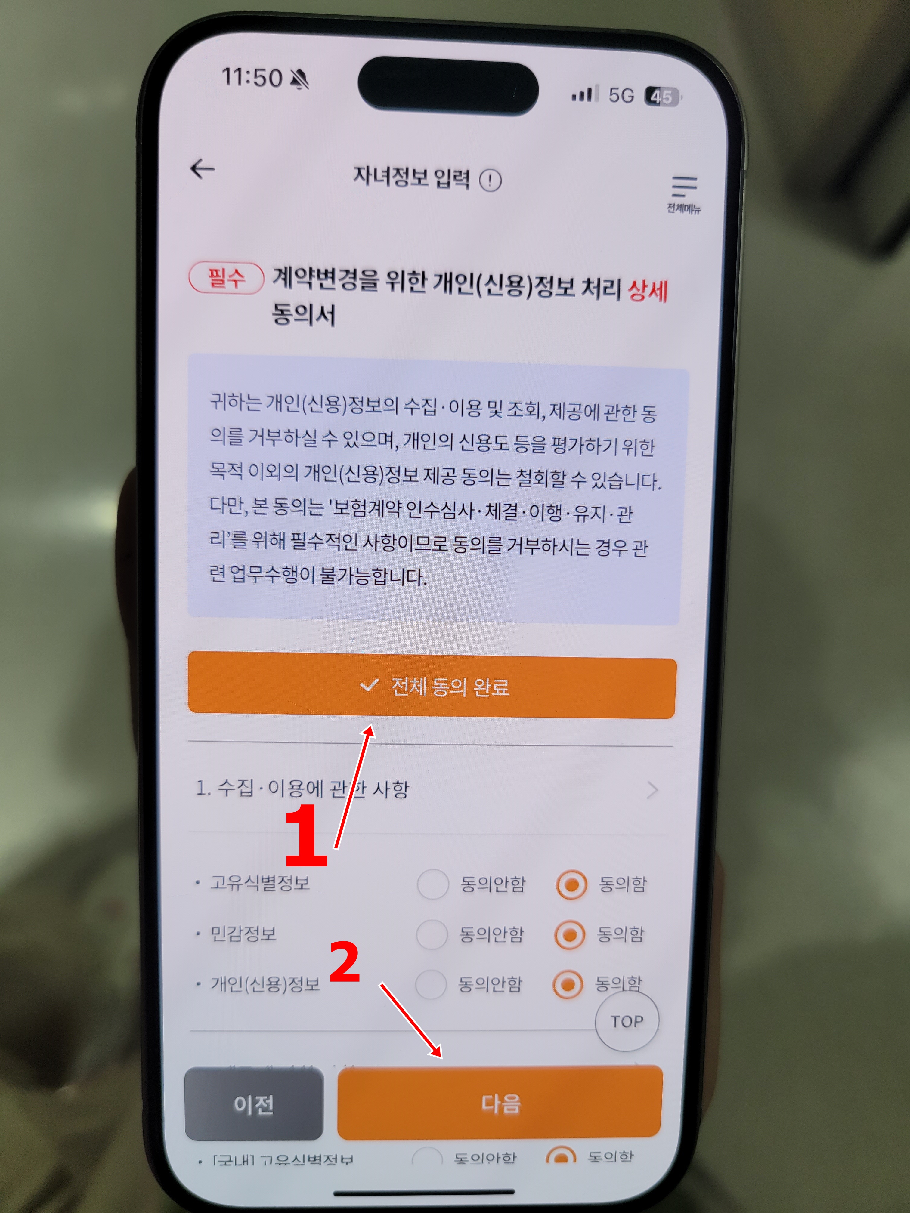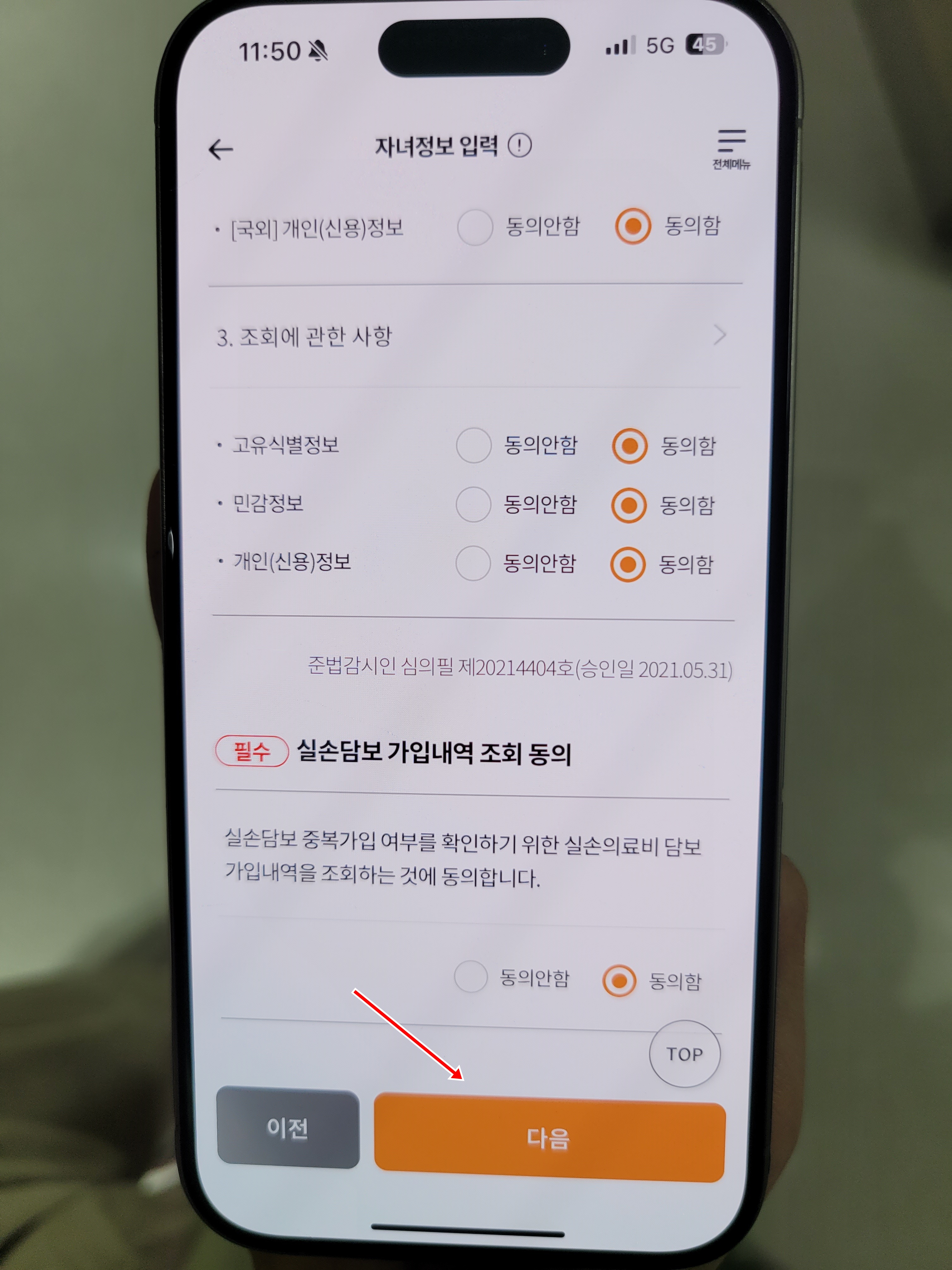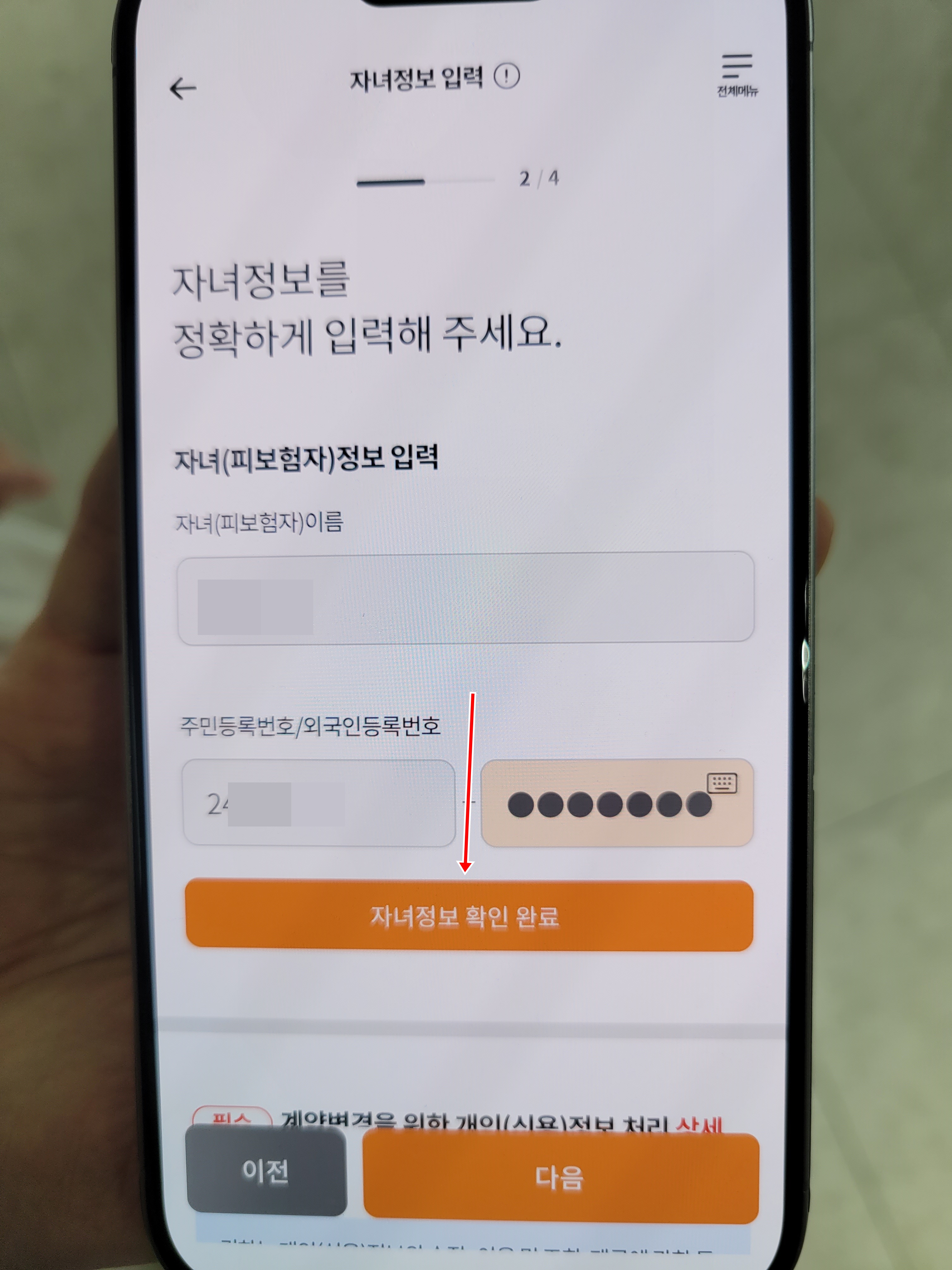 그다음 전체동의완료를 체크 하신 후 다음을 눌러서 태아등록을 끝마칩니다. 간단하죠?