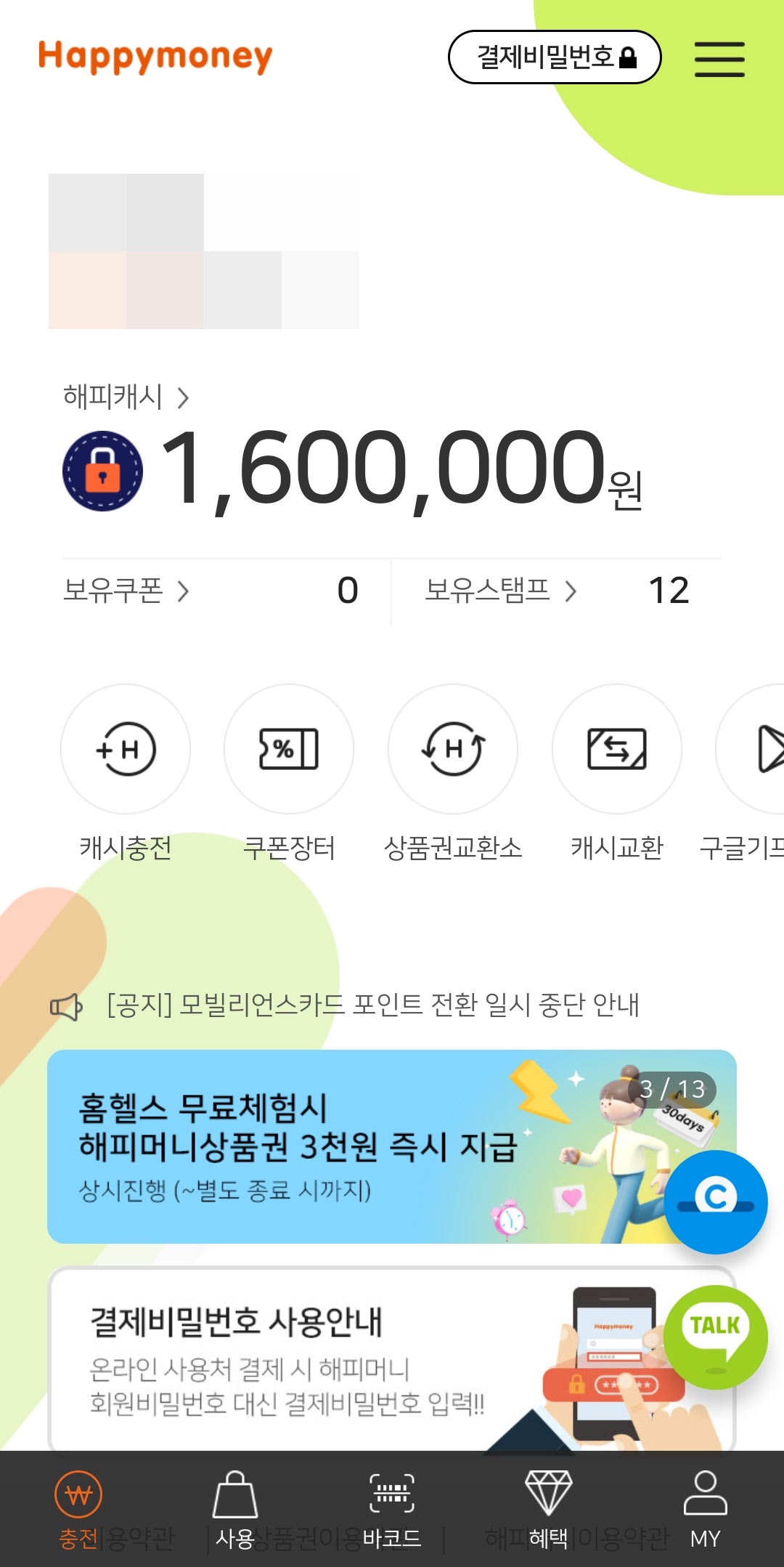 해피머니에서 충전을 해서 사용하는 과정중 잔액이 남아서 환불이나 기타 충전행위를 할 때 이 잔돈때문에 더 충전이 안된다던가 하는 경우가 많이 있습니다.