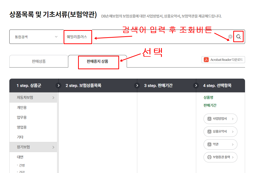 DB손해보험 약관 검색 방법